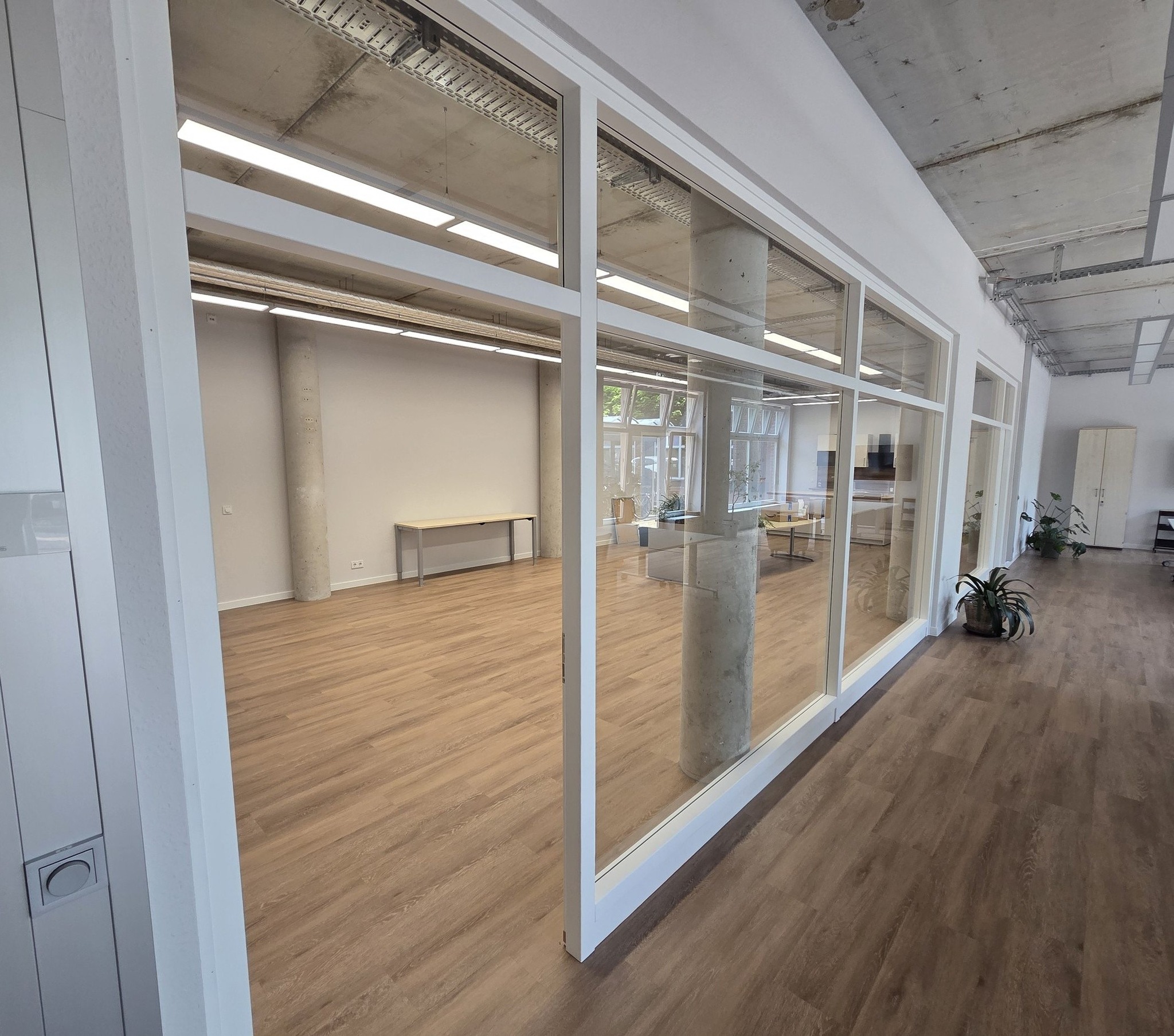 Für dieses Projekt haben wir Blockrahmenelemente aus Whitewood selbst gefertigt, in der gewünschten RAL-Farbe lackiert und mit großflächigem Sicherheitsglas sowie integrierten Schallschutztüren kombiniert. Das Ergebnis? Lichtdurchflutete Räume, elegante Linien [...]